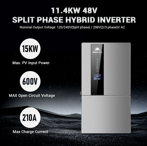SunGoldPowerSunGoldPower Hybrid Inverter | 11.4kW 48V DC–120/240V AC | Split-Phase High-Capacity 11.4kW Hybrid Solar Inverter with Dual/Triple MPPT & Scala...