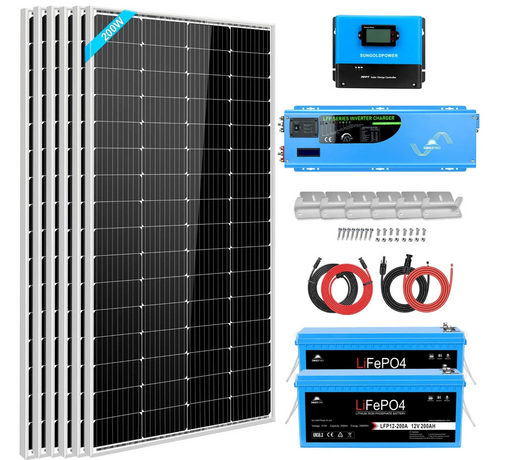 View full detailsSunGoldPower Off-Grid Solar Kit | 3000W 12V 120V Output | 2×200Ah LiFePO₄ Batteries | 600W Solar Panels