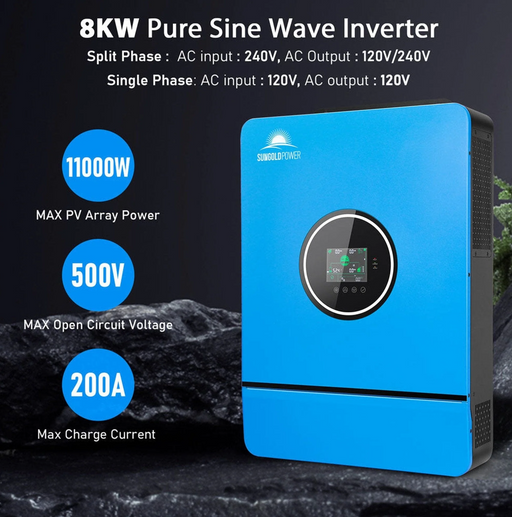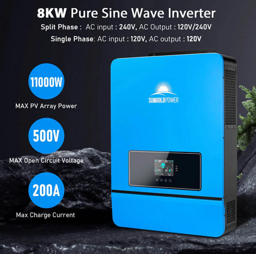 View full detailsSunGoldPower Off-Grid Solar Kit | 8kW 48V Split-Phase 120/240V | 10.24kWh LiFePO₄ Battery | 415W Panels (8-Pack)