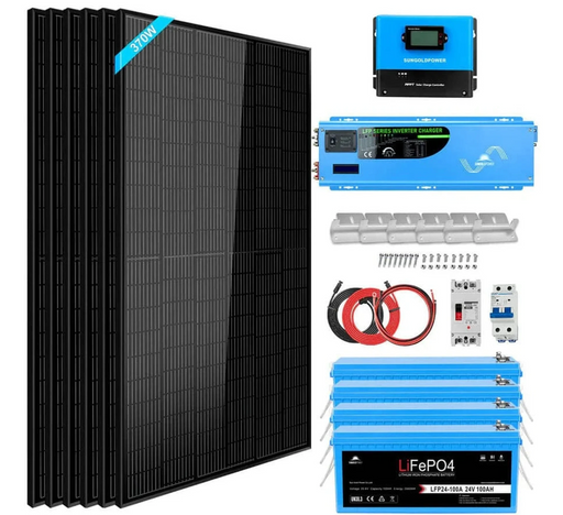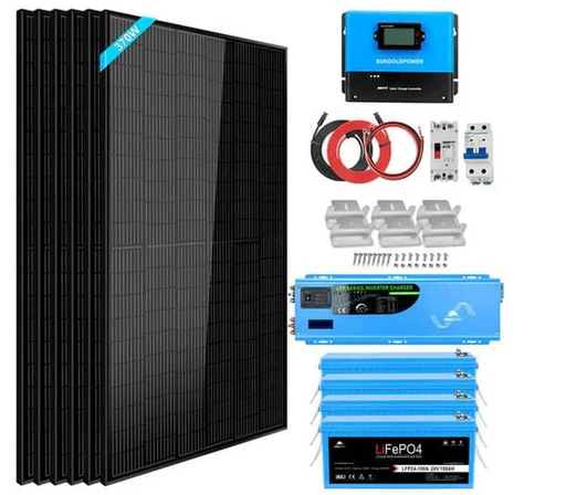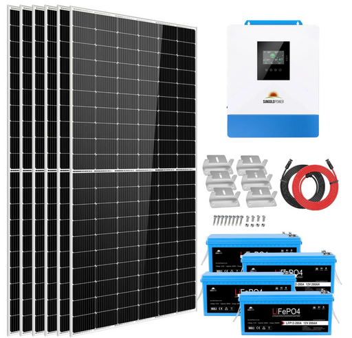 View full detailsSunGoldPower Off-Grid Solar Kit | 3000W 24V 120V Output | Lithium Battery | 800W Solar Panels