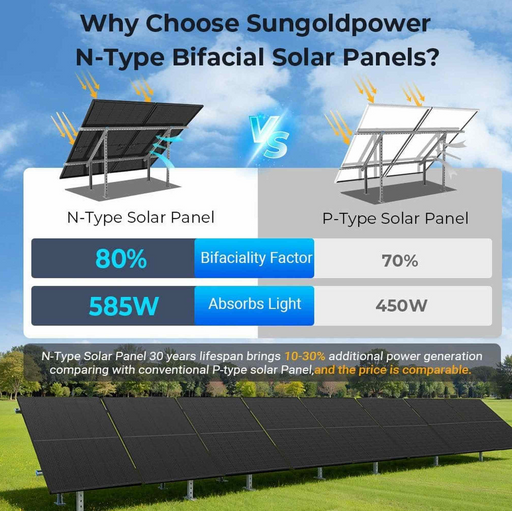 View full detailsSunGoldPower Solar Panel | 450W Bifacial N-Type Monocrystalline | UL61730 | 4-Pack