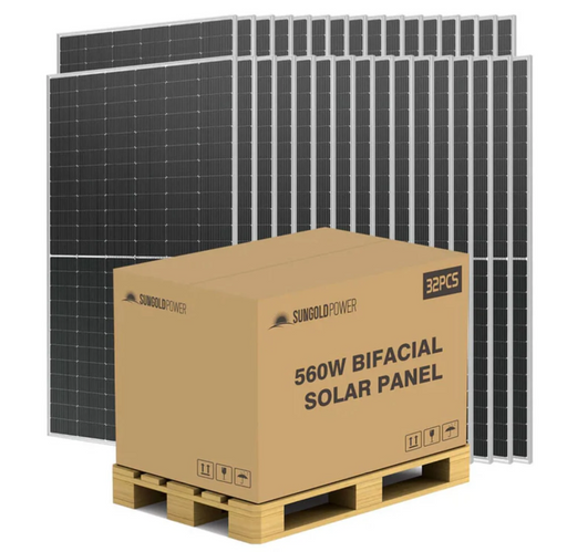 View full detailsSunGoldPower Solar Panel | 560W Bifacial N-Type Monocrystalline | 18-Pack